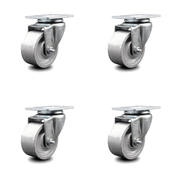 Listing is for a set of four (4) Service Caster Series #20 swivel casters, four (4) swivel casters with 3” diameter by 1-1/4” wide semi steel cast iron wheels. Supports a total weight of 1,200lbs (300lbs/per caster). When searching for a reliable and durable solution to your caster needs, consider Service Caster’s Series 20 sleeve bearing semi-steel cast iron casters. The Service Caster Series #20 is ideal for light and medium duty material handling, carts, equipment, and shop projects. The zinc plated finish provides durability under any condition, while the semi-steel wheels are abrasion resistant and rugged, maintaining effortless rolling under heavier loads, and provides a cost-effective solution over steel wheels. Sleeve bearings provide a metal sleeve inserted in a wheel to rest directly on the axle. This option is only recommended when rolling ease is less critical. Mounting options include top plate, bolt hole and standard and metric threaded stem sizes. Service Caster is unsurpassed in quality, reliability, and excellent customer service. Count on us to move you forward.