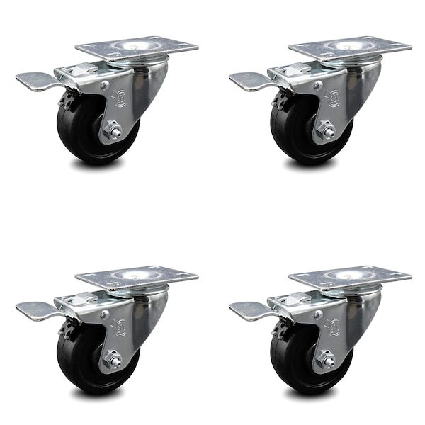 3 Inch Soft Rubber Swivel Top Plate Caster Set with Total Lock Brake SCC