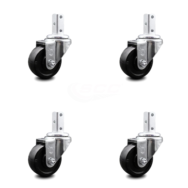 Listing is for four (4) Service Caster Series #20 swivel casters with a 3” diameter by 1-1/4” wide black soft rubber wheels and a 3/4" square stems. Supports a total weight of 700lbs (175lbs/per caster). When searching for a reliable and durable solution to your caster needs, consider Service Caster’s Series 20 square stem soft rubber casters. The Service Caster Series 20 is ideal for light and medium duty material handling, carts, equipment, and shop projects. The zinc plated finish provides durability under any condition. The soft rubber wheels- resistant to most chemicals and oils- combine a soft tread on a hard rubber core, offering quiet movement and a cushioned ride. The square stems are designed to be bolted or riveted onto the inside of angled iron legs or against any flat surface. Service Caster is unsurpassed in quality, reliability, and excellent customer service. Count on us to move you forward.