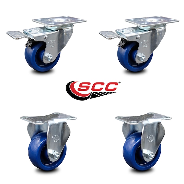 3 Inch Solid Polyurethane Swivel Top Plate Caster Lock Brakes 2 Rigid SCC, 2PK
