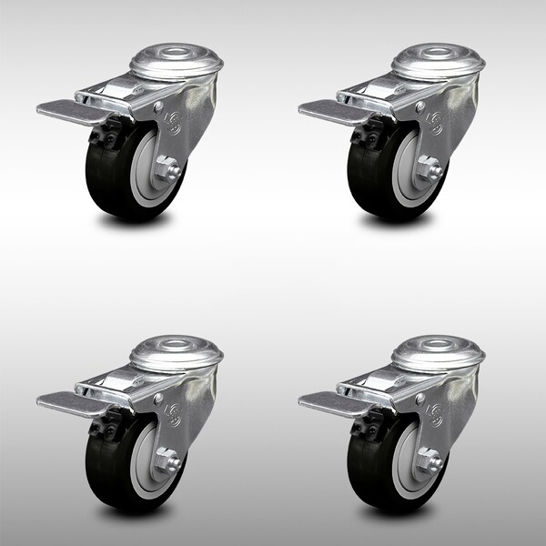 3 Inch SS Black Polyurethane Swivel Bolt Hole Caster Set with Total Lock Brake