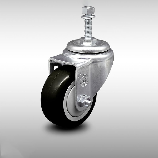 3 Inch SS Black Polyurethane Wheel Swivel 3/8 Inch Threaded Stem Caster SCC