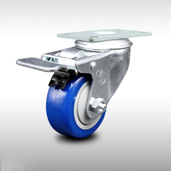 3 Inch SS Blue Polyurethane Top Plate Caster with Total Lock Brake SCC