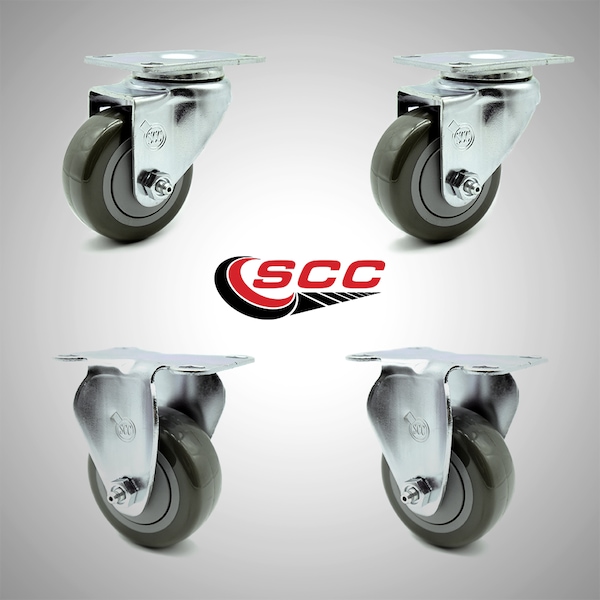 3 Inch SS Gray Polyurethane Swivel Top Plate Caster Set with 2 Rigid SCC