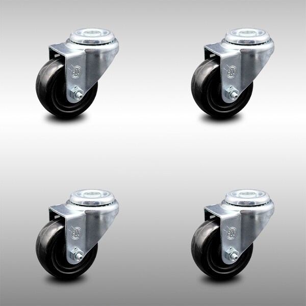 3 Inch SS Hard Rubber Wheel Swivel Bolt Hole Caster Set