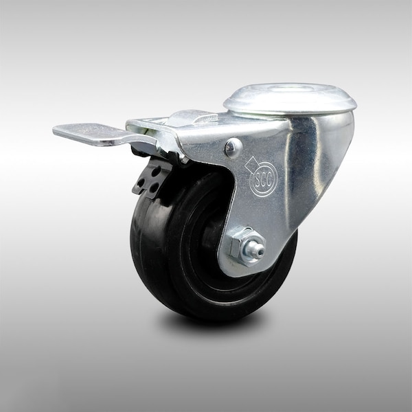3 Inch SS Hard Rubber Wheel Swivel Bolt Hole Caster with Total Lock Brake SCC