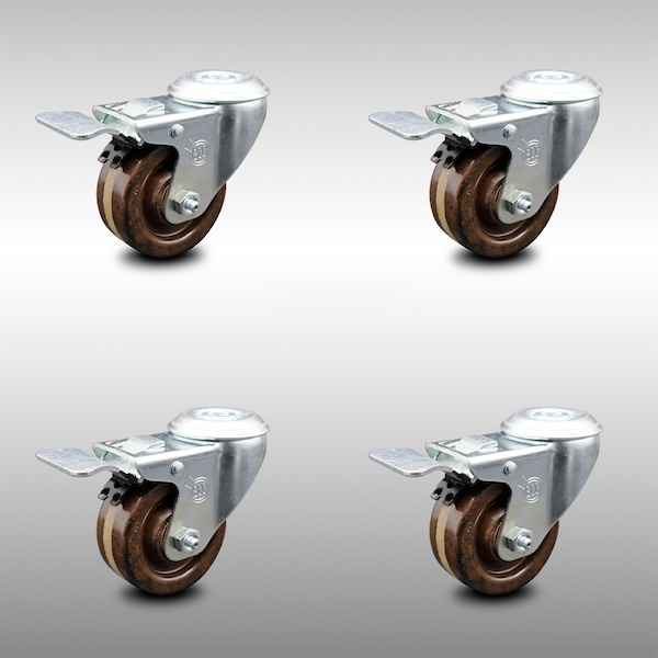 3 Inch SS High Temp Phenolic Swivel Bolt Hole Caster Set with Total Lock Brake