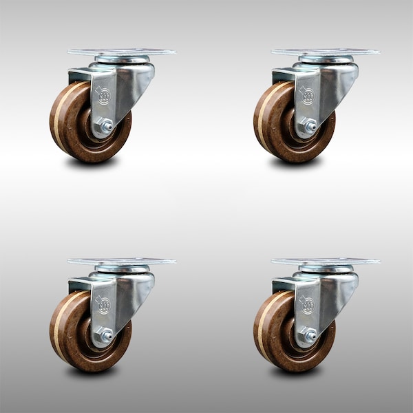 3 Inch SS High Temp Phenolic Wheel Swivel Top Plate Caster Set