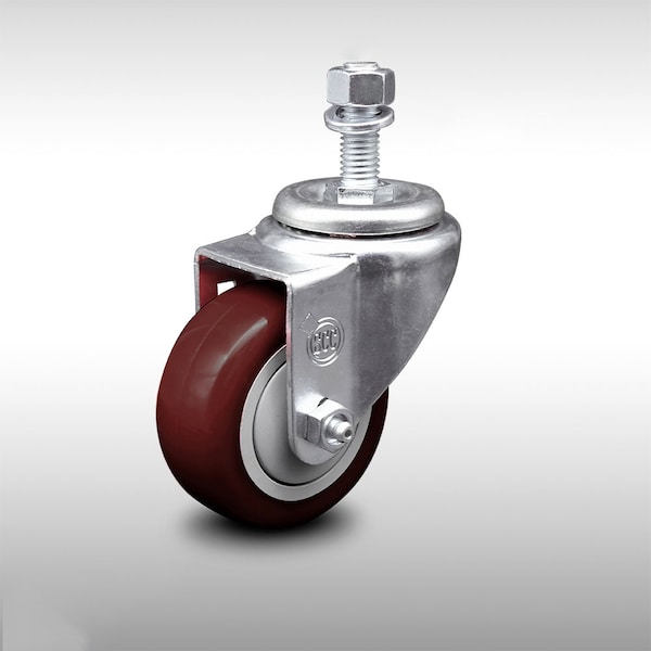 3 Inch SS Maroon Polyurethane Wheel Swivel 1/2 Inch Threaded Stem Caster SCC