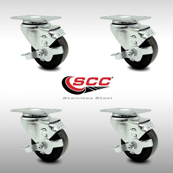 3 Inch SS Phenolic Swivel Top Plate Caster Set with Brake