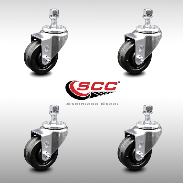 3 Inch SS Phenolic Wheel Swivel 10mm Threaded Stem Caster Set