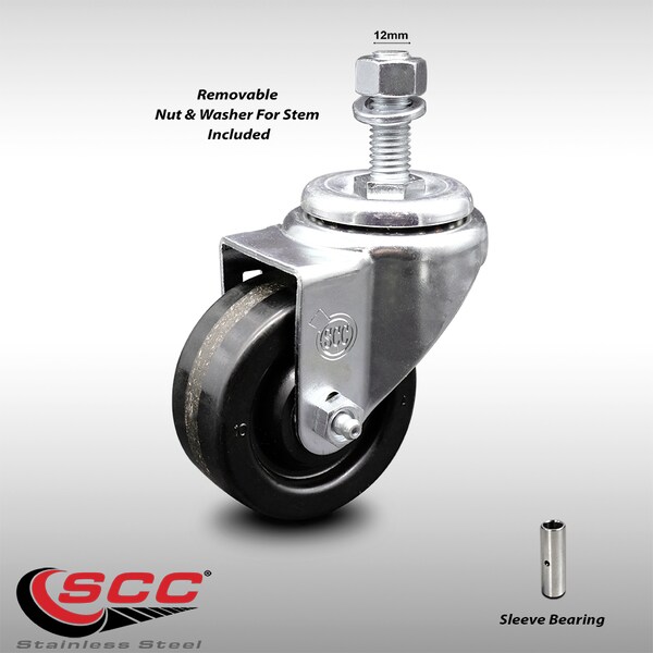 3 Inch SS Phenolic Wheel Swivel 12mm Threaded Stem Caster