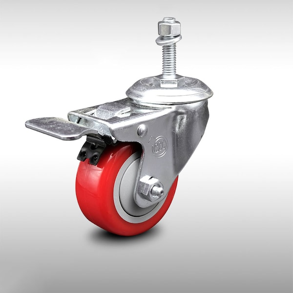 3 Inch SS Red Polyurethane 10mm Threaded Stem Caster with Total Lock Brake