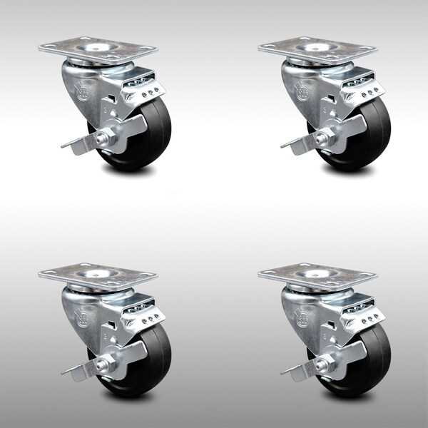 Listing is for a set of four (4) Service Caster Series #20 stainless steel casters, four (4) swivel top plate casters with top lock brakes, 3” diameter by 1-1/4” wide phenolic wheels. Supports a total weight of 700lbs (175lbs/per caster). When searching for a reliable and durable solution to your caster needs, consider Service Caster’s Series 20 soft rubber casters. The Service Caster Series #20 is ideal for light and medium duty material handling, carts, equipment, and shop projects. The zinc plated finish provides durability under any condition. The soft rubber wheels- resistant to most chemicals and oils- combine a soft tread on a hard rubber core, offering quiet movement and a cushioned ride. Mounting options include top plate, bolt hole and standard and metric threaded stem sizes. Service Caster is unsurpassed in quality, reliability, and excellent customer service. Count on us to move you forward.
