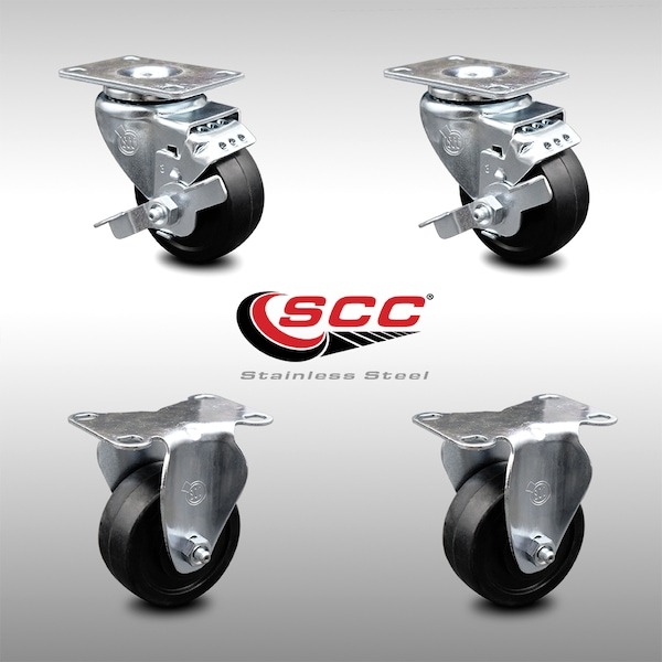 3 Inch SS Soft Rubber Wheel Top Plate Caster Set with 2 Brake 2 Rigid SCC