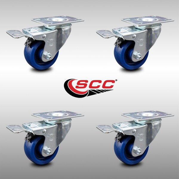 3 Inch SS Solid Polyurethane Top Plate Caster Set Total Lock Brake SCC