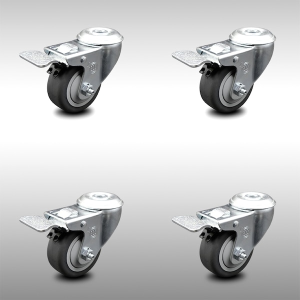3 Inch SS Thermoplastic Rubber Swivel Bolt Hole Caster Set with Total Lock Brake