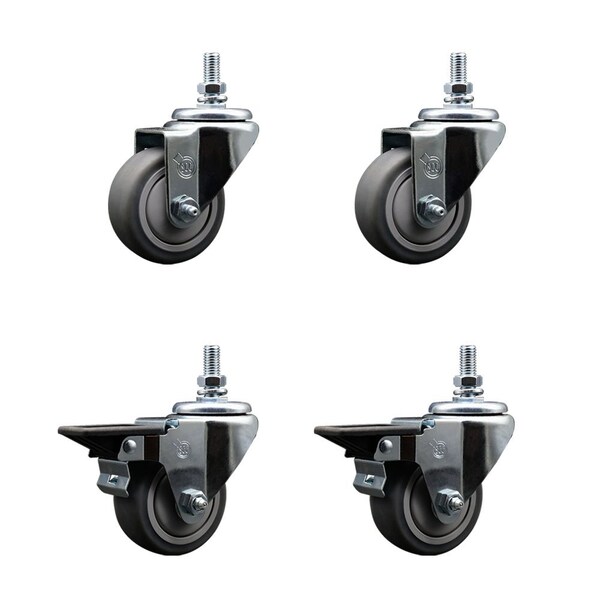 3 Inch Thermoplastic Rubber 12 Inch Threaded Stem Caster Set 2 Brakes SCC