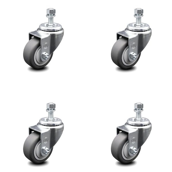 3 Inch Thermoplastic Rubber Wheel Swivel 12mm Threaded Stem Caster Set SCC
