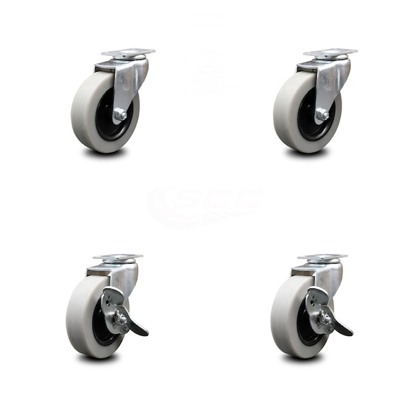 3 Inch Thermoplastic Wheel Top Plate Caster Set with 2 Brakes