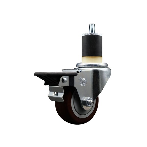 3'' Maroon Poly Swivel 1-7/8'' Expanding Stem Caster with Brake