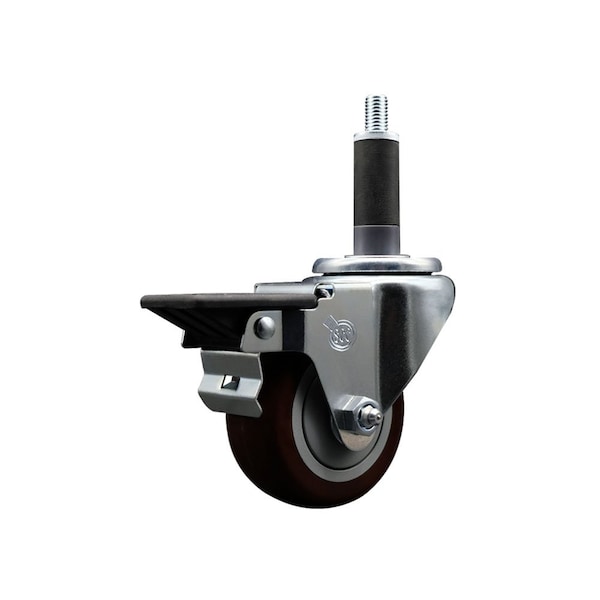 3'' Maroon Poly Swivel 1'' Expanding Stem Caster with Brake