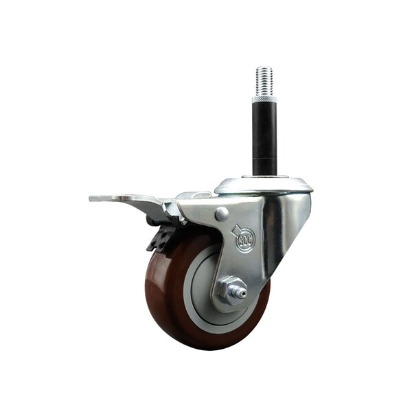 Listing is for one 1 Service Caster Series #20 3/4'' expanding stem swivel caster with a 3'' diameter by 1-1/4'' wide maroon polyurethane wheel and a total locking brake capable of supporting 300 lbs./caster. When searching for a reliable and durable solution to your caster needs, look no further than the Service Caster Series 20 expanding stem maroon polyurethane wheel casters. The Series #20 features an innovative expanding stem that can easily adapt to the inside diameter of the opening, allowing for a secure fit in round or square tubes. Simply tighten the topmost knurled nut to compress the rubber for a snug fit. For added security, further compress the rubber with a wrench via the nut under the swivel raceway. Finely crafted with a bright zinc plated finish, heat-treated ball bearing raceway, and a maroon polyurethane wheel, this versatile caster is ideal for work tables, shop projects, or any equipment with round or square tube legs. Service Caster is unsurpassed in quality, reliability, and excellent customer service. Count on us to move you forward.