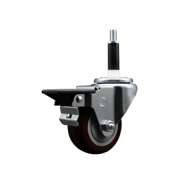 3'' Maroon Poly Swivel 7/8'' Expanding Stem Caster with Brake