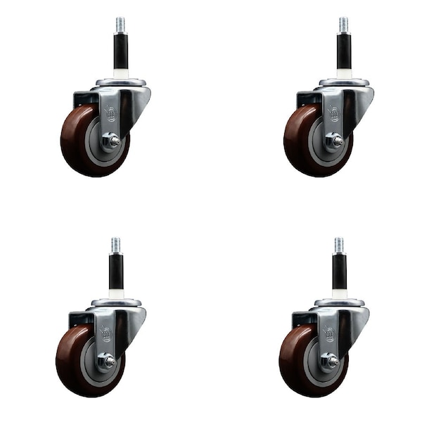 3'' Maroon Poly Wheel Swivel 7/8'' Expanding Stem Caster Set, 4PK