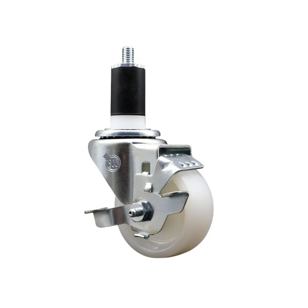Listing is for one 1 Service Caster Series #20 1-1/2'' expanding stem swivel caster with a 3'' diameter by 1-1/4'' wide nylon wheel and a top locking brake capable of supporting 300 lbs./caster. When searching for a reliable and durable solution to your caster needs, look no further than the Service Caster Series 20 expanding stem nylon wheel casters. The Series #20 features an innovative expanding stem that can easily adapt to the inside diameter of the opening, allowing for a secure fit in round or square tubes. Simply tighten the topmost knurled nut to compress the rubber for a snug fit. For added security, further compress the rubber with a wrench via the nut under the swivel raceway. Finely crafted with a bright zinc plated finish, heat-treated ball bearing raceway, and a nylon wheel, this versatile caster is ideal for work tables, shop projects, or any equipment with round or square tube legs. Service Caster is unsurpassed in quality, reliability, and excellent customer service. Count on us to move you forward.