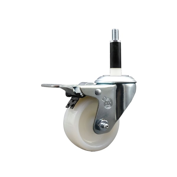 Listing is for one 1 Service Caster Series #20 7/8'' expanding stem swivel caster with a 3'' diameter by 1-1/4'' wide nylon wheel and a total locking brake capable of supporting 300 lbs./caster. When searching for a reliable and durable solution to your caster needs, look no further than the Service Caster Series 20 expanding stem nylon wheel casters. The Series #20 features an innovative expanding stem that can easily adapt to the inside diameter of the opening, allowing for a secure fit in round or square tubes. Simply tighten the topmost knurled nut to compress the rubber for a snug fit. For added security, further compress the rubber with a wrench via the nut under the swivel raceway. Finely crafted with a bright zinc plated finish, heat-treated ball bearing raceway, and a nylon wheel, this versatile caster is ideal for work tables, shop projects, or any equipment with round or square tube legs. Service Caster is unsurpassed in quality, reliability, and excellent customer service. Count on us to move you forward.