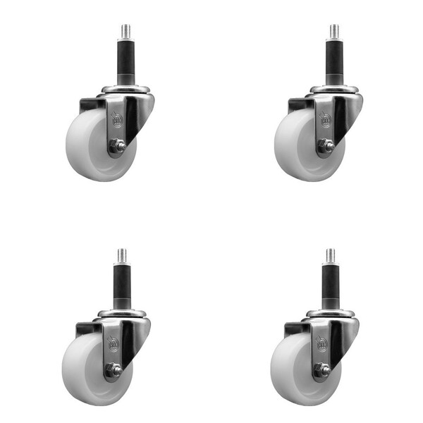 Listing is for a set of four 4 Service Caster Series #20 1'' expanding stem swivel casters with 3'' diameter by 1-1/4'' wide nylon wheels capable of supporting a total weight of 1,200 lbs. 300 lbs./caster.. When searching for a reliable and durable solution to your caster needs, look no further than the Service Caster Series 20 expanding stem nylon wheel casters. The Series #20 features an innovative expanding stem that can easily adapt to the inside diameter of the opening, allowing for a secure fit in round or square tubes. Simply tighten the topmost knurled nut to compress the rubber for a snug fit. For added security, further compress the rubber with a wrench via the nut under the swivel raceway. Finely crafted with a bright zinc plated finish, heat-treated ball bearing raceway, and a nylon wheel, this versatile caster is ideal for work tables, shop projects, or any equipment with round or square tube legs. Service Caster is unsurpassed in quality, reliability, and excellent customer service. Count on us to move you forward.