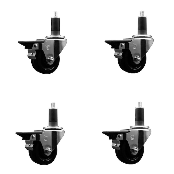 3'' Phenolic Swivel 1-1/4'' Expanding Stem Caster Set with Brake, 4PK