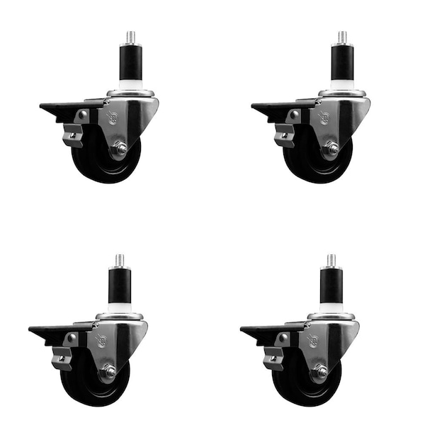 3'' Phenolic Swivel 1-3/8'' Expanding Stem Caster Set with Brake, 4PK