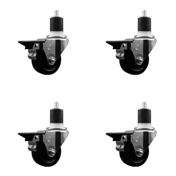 3'' Phenolic Swivel 1-7/8'' Expanding Stem Caster Set with Brake, 4PK