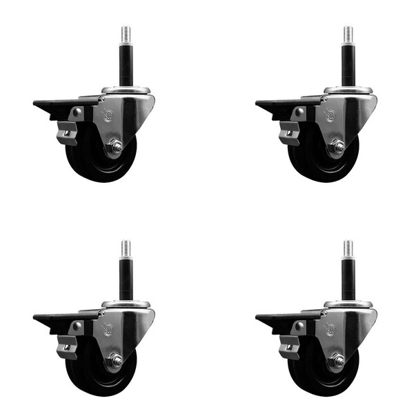 3'' Phenolic Swivel 3/4'' Expanding Stem Caster Set with Brake, 4PK