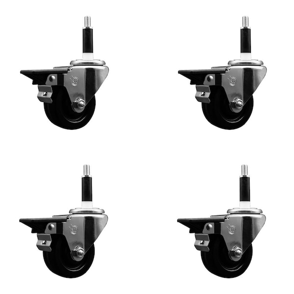 3'' Phenolic Swivel 7/8'' Expanding Stem Caster Set with Brake, 4PK