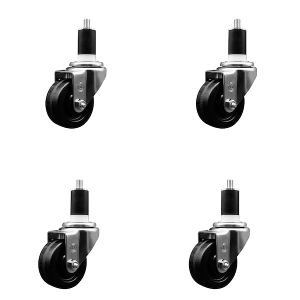 3'' Phenolic Wheel Swivel 1-1/2'' Expanding Stem Caster Set, 4PK