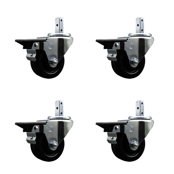 3'' Phenolic Wheel Swivel 3/4'' Square Stem Caster Set with Brake, 4PK