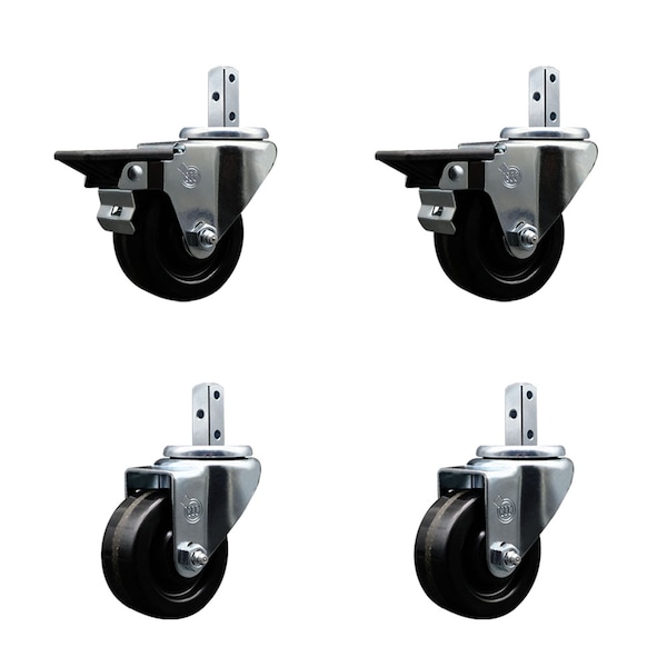 3'' Phenolic Wheel Swivel 7/8'' Square Stem Caster Set 2 Brakes, 4PK