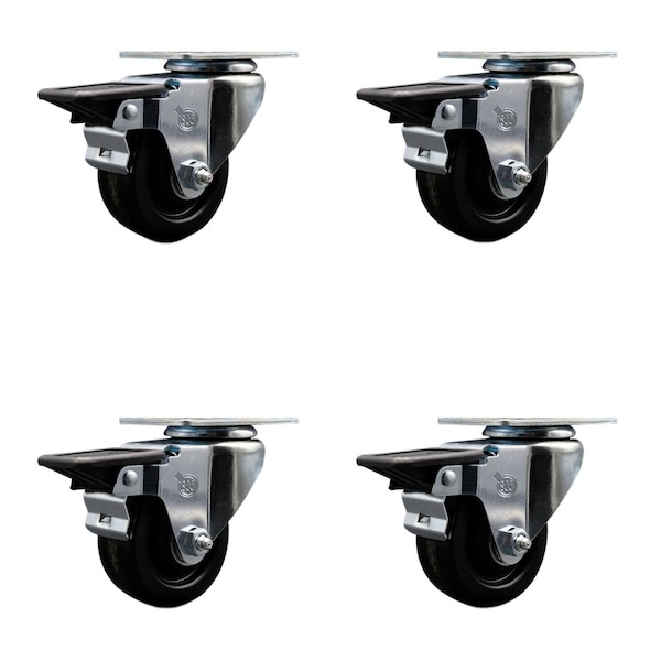 3'' Phenolic Wheel Swivel Top Plate Caster Set with Posi Brake, 4PK