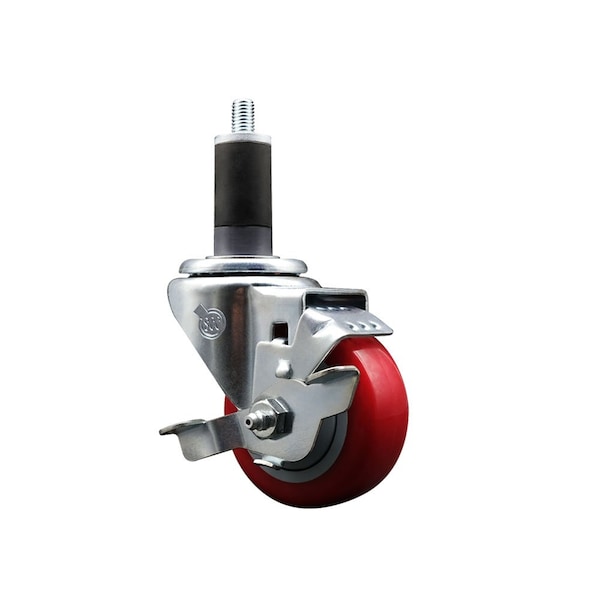 3'' Red Poly Swivel 1-1/4'' Expanding Stem Caster with Brake