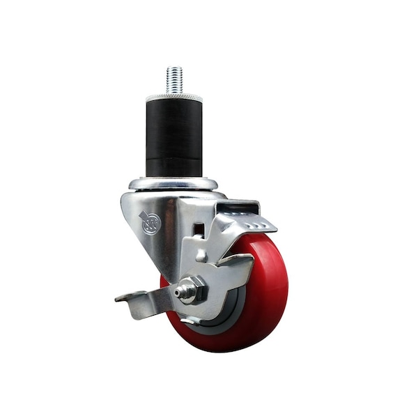3'' Red Poly Swivel 1-3/4'' Expanding Stem Caster with Brake