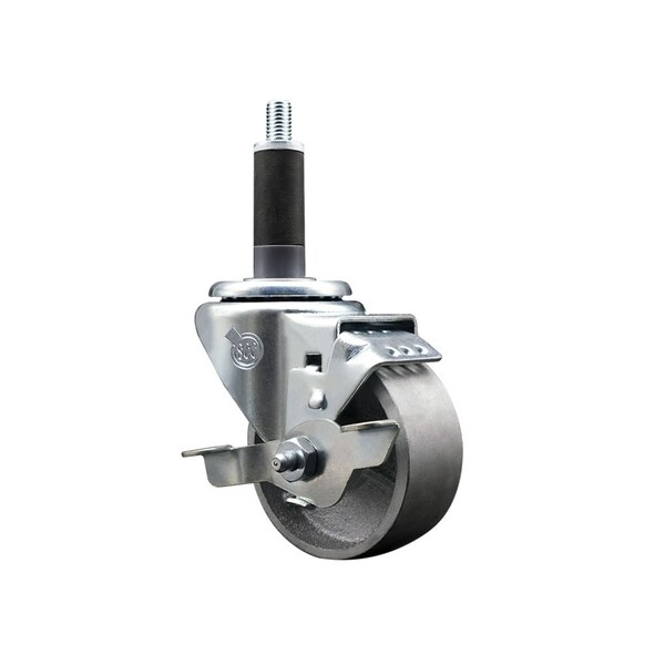 Listing is for one 1 Service Caster Series #20 1'' expanding stem swivel caster with a 3'' diameter by 1-1/4'' wide silver semi steel cast iron wheel and a top locking brake capable of supporting 300 lbs./caster. When searching for a reliable and durable solution to your caster needs, look no further than the Service Caster Series 20 expanding stem semi steel cast iron wheel casters. The Series #20 features an innovative expanding stem that can easily adapt to the inside diameter of the opening, allowing for a secure fit in round or square tubes. Simply tighten the topmost knurled nut to compress the rubber for a snug fit. For added security, further compress the rubber with a wrench via the nut under the swivel raceway. Finely crafted with a bright zinc plated finish, heat-treated ball bearing raceway, and a semi steel cast iron wheel, this versatile caster is ideal for work tables, shop projects, or any equipment with round or square tube legs. Service Caster is unsurpassed in quality, reliability, and excellent customer service. Count on us to move you forward.