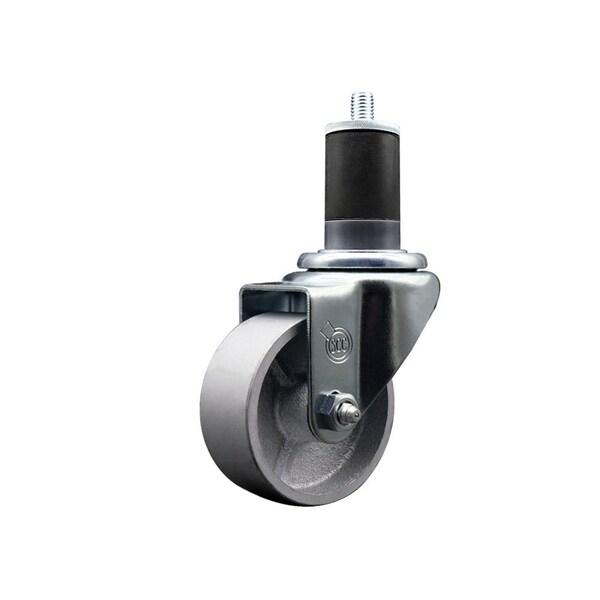 Listing is for one 1 Service Caster Series #20 1-5/8'' expanding stem swivel caster with a 3'' diameter by 1-1/4'' wide silver semi steel cast iron wheel capable of supporting 300 lbs./caster. When searching for a reliable and durable solution to your caster needs, look no further than the Service Caster Series 20 expanding stem semi steel cast iron wheel casters. The Series #20 features an innovative expanding stem that can easily adapt to the inside diameter of the opening, allowing for a secure fit in round or square tubes. Simply tighten the topmost knurled nut to compress the rubber for a snug fit. For added security, further compress the rubber with a wrench via the nut under the swivel raceway. Finely crafted with a bright zinc plated finish, heat-treated ball bearing raceway, and a semi steel cast iron wheel, this versatile caster is ideal for work tables, shop projects, or any equipment with round or square tube legs. Service Caster is unsurpassed in quality, reliability, and excellent customer service. Count on us to move you forward.