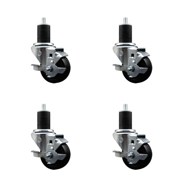 3'' Soft Rubber Swivel 1-3/4'' Expanding Stem Caster Set with Brake, 4PK