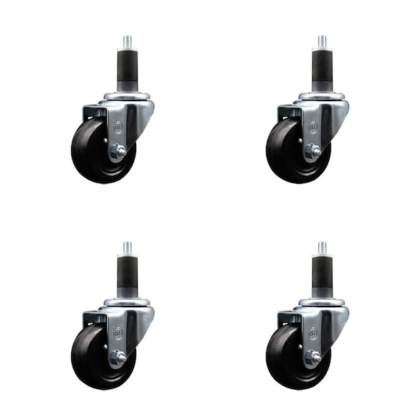 3'' Soft Rubber Wheel Swivel 1-1/4'' Expanding Stem Caster Set, 4PK