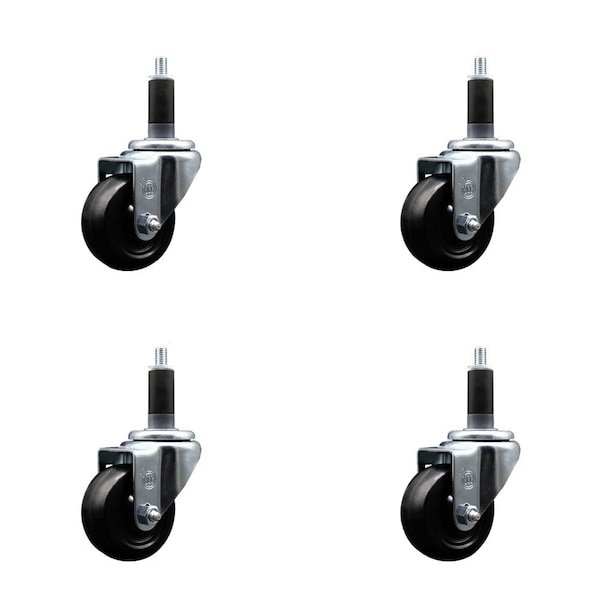 Listing is for a set of four 4 Service Caster Series #20 1-1/8'' expanding stem swivel casters with 3'' diameter by 1-1/4'' wide black soft rubber wheels capable of supporting a total weight of 700 lbs. 175 lbs./caster.. When searching for a reliable and durable solution to your caster needs, look no further than the Service Caster Series 20 expanding stem soft rubber wheel casters. The Series #20 features an innovative expanding stem that can easily adapt to the inside diameter of the opening, allowing for a secure fit in round or square tubes. Simply tighten the topmost knurled nut to compress the rubber for a snug fit. For added security, further compress the rubber with a wrench via the nut under the swivel raceway. Finely crafted with a bright zinc plated finish, heat-treated ball bearing raceway, and a soft rubber wheel, this versatile caster is ideal for work tables, shop projects, or any equipment with round or square tube legs. Service Caster is unsurpassed in quality, reliability, and excellent customer service. Count on us to move you forward.