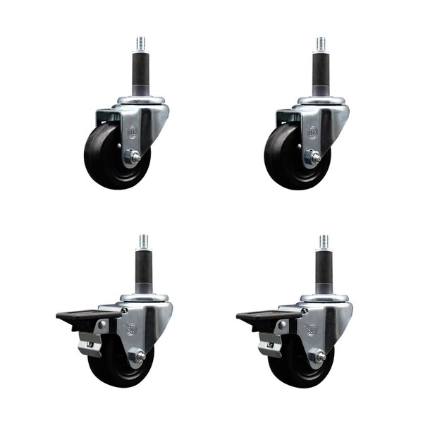 3'' Soft Rubber Wheel Swivel 1'' Expanding Stem Caster Set 2 Brakes, 4PK