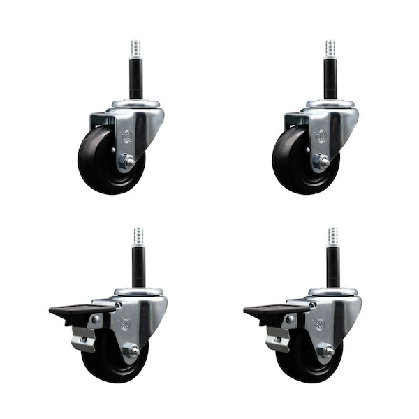 3'' Soft Rubber Wheel Swivel 3/4'' Expanding Stem Caster Set 2 Brakes, 4PK